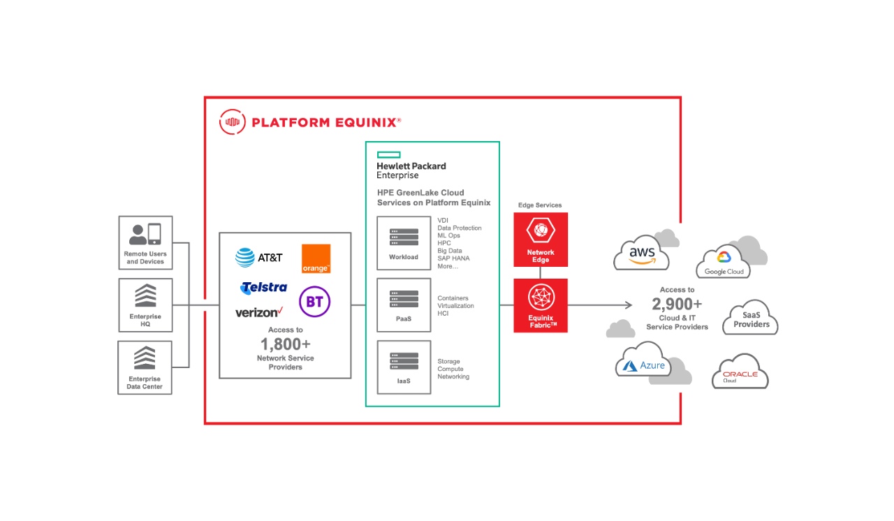 Integra la tua distribuzione HPE GreenLake con interconnessioni a bassa latenza ai principali provider globali di cloud, rete e SaaS tramite la piattaforma Equinix, migliorando sia le prestazioni delle app che l'esperienza utente.